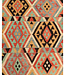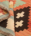 Beautiful hand-woven traditional kilim carpet from Afghanistan, beautiful soft colours, certainly not a 'hard' fabric like most kilims!, but timeless and suitable for all types of interior styles due to the colours