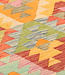 Beautiful hand-woven traditional kilim carpet from Afghanistan, beautiful soft colours, certainly not a 'hard' fabric like most kilims!, but timeless and suitable for all types of interior styles due to the colours