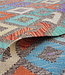This elegant, colorful and unique hand woven Afghan kilim rug from Afghanistan is made out of Ghazny wool which is known as the best wool in this region.