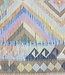 This elegant, colorful and unique hand woven Afghan kilim rug from Afghanistan is made out of Ghazny wool which is known as the best wool in this region.