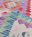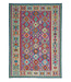 This elegant, colorful and unique hand woven Afghan kilim rug from Afghanistan is made out of Ghazny wool which is known as the best wool in this region.