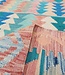 This elegant, colorful and unique hand woven Afghan kilim rug from Afghanistan is made out of Ghazny wool which is known as the best wool in this region.