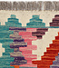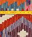This Afghan Kilim rug (244x79 cm) showcases a striking sequence of layered diamond medallions in rich shades of coral, teal, plum, pink, and ivory. The stepped tribal edges and zigzag motifs add a rhythmic energy, making it a perfect accent for hallways, boho interiors, or eclectic living spaces. Handwoven from 100% wool and dyed with natural vegetable pigments, it is reversible, lightweight, and full of artisan charm.
