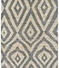 Dominating the rug's design is a series of bold black diamonds, meticulously woven to form a striking geometric pattern. These diamonds, with their crisp lines and strong contrasts, add a dynamic and modern edge to the rug, creating a visual rhythm that captivates the eye.