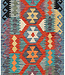 Make a vibrant statement with this handwoven kilim runner, sized 257x78 cm. Featuring bold geometric medallions in red, turquoise, purple, yellow, and orange tones, this rug showcases masterful craftsmanship and dynamic symmetry. Its durable wool flatweav Read more..