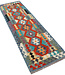 Make a vibrant statement with this handwoven kilim runner, sized 257x78 cm. Featuring bold geometric medallions in red, turquoise, purple, yellow, and orange tones, this rug showcases masterful craftsmanship and dynamic symmetry. Its durable wool flatweave makes it ideal for high-traffic areas like hallways or entryways, while its vivid pattern adds instant character to any interior.