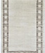 The rug's border is adorned with a classic combination of beige and brown, framing the central area with understated elegance. These earthy tones evoke a sense of warmth and tranquility, creating a welcoming ambiance in any room.