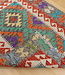 This elegant, colorful and unique handwoven Afghan kilim rug from Afghanistan is made out of Ghazny wool which is known as the best wool in this region.