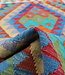 This elegant, colorful and unique handwoven Afghan kilim rug from Afghanistan is made out of Ghazny wool which is known as the best wool in this region.