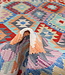 This elegant, colorful and unique handwoven Afghan kilim rug from Afghanistan is made out of Ghazny wool which is known as the best wool in this region.