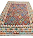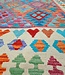 This elegant, colorful and unique handwoven Afghan kilim rug from Afghanistan is made out of Ghazny wool which is known as the best wool in this region.