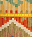 This Afghan Kilim rug, measuring 240x79 cm, brings a calming palette of nature-inspired tones into your space. Its bold diamond medallions are arranged vertically along a soft ivory path, flanked by moss green, clay, ochre, and indigo detailing. Handwoven Read more..