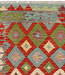 Bring a vibrant cultural touch to your interior with this handwoven Afghan Kilim rug, beautifully designed in a classic tribal diamond pattern. The size 281x195 cm makes it a standout piece, featuring an energetic mix of red, cream, green, blue, and purpl Read more..