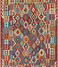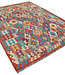 Handwoven Afghan Kilim rug in bold geometric tribal design with vivid multicolour palette. Flatwoven from durable wool – a stunning centrepiece for any space. Read more..