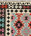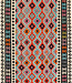 Handwoven Afghan Kilim rug with vibrant diamond tribal motifs in multicolour tones. Durable wool construction, perfect for adding character and warmth to any room. Read more..