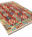 This handwoven Afghan Kilim brings a stunning combination of hexagonal tribal motifs arranged across a deep red base. Each shape is crafted using traditional flatweave techniques, reflecting the rich symbolism of Afghan heritage.