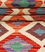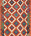 Make a bold statement with this stunning handwoven Kilim runner, featuring a rhythmic diamond pattern in vivid earth tones. Rich shades of rust orange, deep green, turquoise, and violet come together in a traditional tribal design that’s both timeless and lively. Woven from 100% wool, this durable and artistic flat-weave rug is ideal for hallways, entryways, or as a dynamic accent piece in your living area.