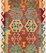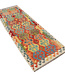 Infuse your space with vibrant charm using this handwoven Kilim runner, featuring a striking medallion pattern in a dynamic range of colors. With shades of red, teal, yellow, green, and orange layered over a cream base, this flat-weave rug bursts with lif Read more..