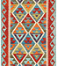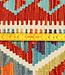 Add a bold bohemian accent to your space with this handcrafted kilim runner. Measuring 251x81 cm, this rug features vivid tribal diamond motifs framed by a striking red border, set against a refreshing turquoise base. Handwoven from 100% wool using tradit Read more..