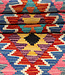 Ignite your space with color using this handwoven kilim runner with a bold tribal diamond design. Measuring 234x77 cm, it's the ideal length for hallways, corridors, or creative zones. The rug features a vibrant palette including teal, rust, pink, mustard, violet, navy, and cream, woven into layered diamond medallions flanked by multicolored geometric motifs. The flatweave technique using 100% wool offers a durable, reversible, and lightweight finish — perfect for everyday use.