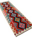 Add bold rhythm and rich tradition to your interior with this handwoven kilim runner featuring a zigzag diamond motif in brilliant colorwork. At 247x79 cm, it’s a perfect fit for longer hallways or narrow spaces in need of a visual punch. Woven in 100% wo Read more..