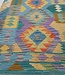 This elegant, colorful and unique hand woven Afghan kilim rug from Afghanistan is made out of Ghazny wool which is known as the best wool in this region.