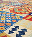This elegant, colorful and unique hand woven Afghan kilim rug from Afghanistan is made out of Ghazny wool which is known as the best wool in this region.