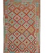This elegant, colorful and unique hand woven Afghan kilim rug from Afghanistan is made out of Ghazny wool which is known as the best wool in this region.