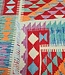This elegant, colorful and unique hand woven Afghan kilim rug from Afghanistan is made out of Ghazny wool which is known as the best wool in this region.