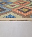This elegant, colorful and unique hand woven Afghan kilim rug from Afghanistan is made out of Ghazny wool which is known as the best wool in this region.
