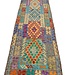 This elegant, colorful and unique hand woven Afghan kilim rug from Afghanistan is made out of Ghazny wool which is known as the best wool in this region.