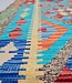 This elegant, colorful and unique hand woven Afghan kilim rug from Afghanistan is made out of Ghazny wool which is known as the best wool in this region.