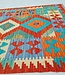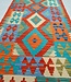 This elegant, colorful and unique hand woven Afghan kilim rug from Afghanistan is made out of Ghazny wool which is known as the best wool in this region.
