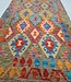 This elegant, colorful and unique hand woven Afghan kilim rug from Afghanistan is made out of Ghazny wool which is known as the best wool in this region.