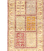 Style: Playful Gabbeh pattern with panel layout and floral touches