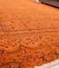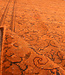 This rug is professionally cleaned and restored, with even vintage wear and the color palette is orange.