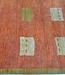 Highlighted within the orange backdrop are equal-sized squares in a complementary yellow color. These squares create a striking contrast against the orange, adding visual interest and depth to the rug's design. The yellow squares serve as focal points, drawing the eye and creating a sense of rhythm and balance within the overall composition.