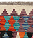 Make a bold statement with this striking handwoven kilim runner, measuring 249x78 cm. Showcasing large tribal diamond motifs in vivid colors like turquoise, coral, red, pink, orange, and black on a neutral base, this rug is a celebration of traditional cr Read more..