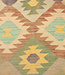 Prachtig handgeweven traditionele kelim tapijt uit Afghanistan, prachtige zachte kleuren, zeker geen 'harde' stof zoals de meeste kelims!, maar tijdloos en geschikt voor alle soorten interieurstijlen dankzij de kleuren
