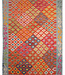 Prachtig handgeweven traditionele kelim tapijt uit Afghanistan, prachtige zachte kleuren, zeker geen 'harde' stof zoals de meeste kelims!, maar tijdloos en geschikt voor alle soorten interieurstijlen dankzij de kleuren