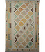 Prachtig handgeweven traditionele kelim tapijt uit Afghanistan, prachtige zachte kleuren, zeker geen 'harde' stof zoals de meeste kelims!, maar tijdloos en geschikt voor alle soorten interieurstijlen dankzij de kleuren