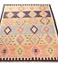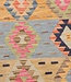Beautiful handwoven traditional kilim carpet from Afghanistan, beautiful soft colors, certainly not a 'hard' fabric like most kilims!, but timeless and suitable for all types of interior styles thanks to the colors