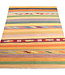 Dit elegante, kleurrijke en unieke handgeweven Afghaanse kelimkleed uit Afghanistan is gemaakt van Ghazni-wol, dat bekend staat als de beste wol in deze regio.