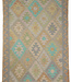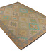 Beautiful handwoven traditional kilim carpet from Afghanistan, beautiful soft colors, certainly not a 'hard' fabric like most kilims!, but timeless and suitable for all types of interior styles thanks to the colors