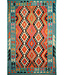 Prachtig handgeweven traditionele kelim tapijt uit Afghanistan, prachtige zachte kleuren, zeker geen 'harde' stof zoals de meeste kelims!, maar tijdloos en geschikt voor alle soorten interieurstijlen dankzij de kleuren