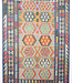 Beautiful handwoven traditional kilim carpet from Afghanistan, beautiful soft colors, certainly not a 'hard' fabric like most kilims!, but timeless and suitable for all types of interior styles thanks to the colors