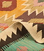 met milieuvriendelijke plantaardige kleurstoffen, bevat deze kelim ingewikkelde