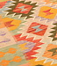 met milieuvriendelijke plantaardige kleurstoffen, bevat deze kelim ingewikkelde