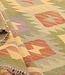 Prachtig handgeweven traditionele kelim tapijt uit Afghanistan, prachtige zachte kleuren, zeker geen 'harde' stof zoals de meeste kelims!, maar tijdloos en geschikt voor alle soorten interieurstijlen dankzij de kleuren