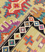 Prachtige met de handgeweven kelim tapijt uit Afghanistan, mooie zachte kleuren, zeker geen 'harde' stof zoals bij de meeste kelims!, maar door de kleuren tijdloos en passend bij alle soorten interieur stijlen